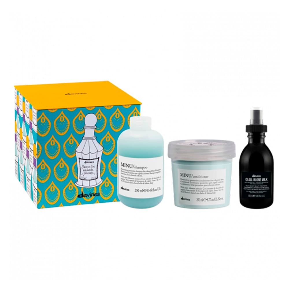 Perfekt til daglig brug., Så din hårfarve forbliver strålende længere. En fremragende gaveidé til dig selv eller også en kær ven. Produkt id. Davines-minu-gavesæt 8004608285632