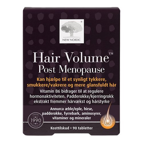 New Nordic Hårvolumen Efter Overgangsalderen – 90 Tabletter er et effektivt kosttilskud designet til kvinder. Der oplever hårtab efter overgangsalderen. Dette produkt indeholder annurca æbleekstrakt med procyanidin B2. Som er anerkendt for sine egenskaber til, at fremme hårvækst og øge hårvolumen.