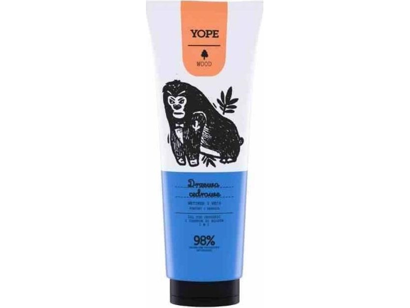 YopeWood 2i1 Shampoo og Gel til Mænd. Cedertræ 250ml er ideel til mænd. Der ønsker en hurtig og effektiv pleje. Denne praktiske 2i1-formel kombinerer shampoo og shower gel., Så du sparer tid i din daglige rutine